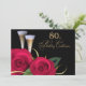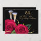 Les roses rouges et les tasses de Champagne élégants conçoivent les quatre-vingtième invitations de célébration d'anniversaire. Customisez le nom, la date et tous les détails de vos invitations. Cartes assorties, timbres-poste et d'autres produits disponibles dans la catégorie d'invitations d'anniversaire/fête d'anniversaire de notre magasin.