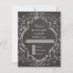 Matching RSVP Response return by mail card including white envelope. Beginning with hand drawn script swirl calligraphy flourishes that have been turned into a hand written chalkboard effect and paired with a double border quatrefoil style frame also in chalky drawing. On the reverse side is a place to put your monogram initial inside the sketch of a starburst design. Art by internationally licensed artist and designer, Audrey Jeanne Roberts, copyright.