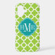 © 2012 Socialite Designs. Our elegant quatrefoil design in green and white iPhone case has a banner for your monogram, initials or name.