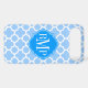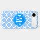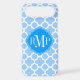 © 2012 Socialite Designs. Our elegant quatrefoil design in light blue and white iPhone case has a banner for your monogram, initials or name.