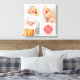 Beautiful personalized canvas wall art print with 3 of your custom newborn baby photos arranged in a square grid photo collage. Personalized with your child's name or monogram in the bottom corner in a quatrefoil frame over modern trendy Moroccan lattice pattern background. Add your favourite family photos and create a beautiful keepsake canvas art print. Click Customize It to move photos around, change the background colour, and customize monogram fonts and colours. Great gift for family, friends, parents and grandparents!