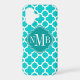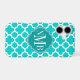 © 2012 Socialite Designs. Our elegant quatrefoil design in turquoise and white iPhone case has a banner for your monogram, initials or name.