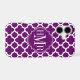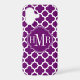 © 2012 Socialite Designs. Notre design élégant de quatrefoil en violet et blanc coque iphone a une bannière pour votre monogramme, initiales ou nom.
