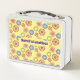 Ce design amusant est composé de fleurs colorées posées sur un arrière - plan jaune. Les paniers repas sont disponibles en 7 couleurs, y compris en inox. Le texte peut être customisé.