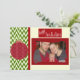 Joli carte photo de vacances de Noël avec notre design Let it Be Christmas, facile à customiser avec votre texte et votre photo, le salut de vacances parfait à envoyer à des amis et des membres de la famille. Cette carte rouge, crème et verte à rayures de chevrons présente une bannière Happy Holidays et un ornement de boules d'arbres rouges.