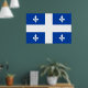 This design features the flag of the Canadian province of Quebec (known as Québec in French). It is the second-most populous province of Canada, after Ontario. It is the only one to have a largely French-speaking population, with French as the sole provincial official language. Most inhabitants live in urban areas near the Saint Lawrence River between Montreal and Quebec City, which is the capital.