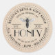 Arrière - plan texturé dans une couleur kraft neutre avec design central avec une illustration vintage queen bee. Personnalisez avec votre nom, adresse et description du miel (brut, embouteillé à la main, source unique, etc.).
