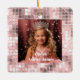 This ceramic Christmas ornament is shown with a holiday sample photo print and text: Queen, name and date.