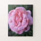 Beautiful Queen Elizabeth pink rose puzzle. This rose is from my garden with morning dew drops on it.