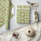 This wrapping paper gift wrap with mint green background has a scattered repeat pattern of my gold crown tiara, with heart shaped diamonds, gems, and pearls, called Queen of Hearts gold crown tiara, was created by me, Kristie Hubler, for my customer's dog Queenie's fabric photo frame, this crown was hand painted onto satin and adhered to the frame. Created in October 2001, copyright protected. The crown sells on fabric here at @Zazzle at http://zazzle.com/fabricatedframes/fabric or http://spoonflower.com/fabric/1371922