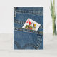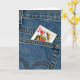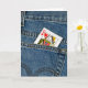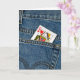Queen of hearts playing card in a blue jean pocket.