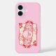 This design offers a fresh, minimalist take on the Queen of Hearts. The mirrored illustration highlights a central figure who embodies grace and confidence, symbolizing enduring beauty and strength. A soft pink background, vivid red accents, and delicate, starry details create an ethereal and feminine vibe.