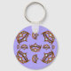 This keychain / key chain, with periwinkle colour background, with a scattered repeat pattern of has the gold crown tiara, with heart shaped diamonds, gems, and pearls, called Queen of Hearts gold crown tiara, was created by me, Kristie Hubler, for my customer's dog Queenie's fabric photo frame, this crown was hand painted onto satin and adhered to the frame. Created in October 2001, copyright protected. The crown sells on fabric here at @Zazzle at http://zazzle.com/fabricatedframes/fabric or http://spoonflower.com/fabric/1371922