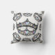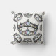 This throw pillow, with design on both sides, has a scattered, repeat pattern, with a white background, of the silver version of my Queen of Hearts gold crown tiara by me, Kristie Hubler, copyright October 2001, made for my customer's dog Queenie's fabric photo frame, via fabricatedframes.com - silver crown on white background, with colourful, heart shape diamonds and pearls. The gold version of is crown was hand painted onto satin and adhered to the frame. Created in October 2001, copyright protected. The crown sells on fabric here at @Zazzle at http://zazzle.com/fabricatedframes/fabric or http://spoonflower.com/fabric/1371922