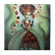 Dark Queen of hearts Painting Alice in Wonderland Fantasy Art print is whimsical interpretation of a beloved children book fairy tale. This is a story of a little girl who decided to dress up as the Queen of Hearts. She is holding a anatomical heart sceptre as hearts and spades are flying out of it. The background contains green and turquoise swirls.