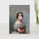 A portrait of Queen Victoria in a pink satin dress blowing a pink bubble gum.