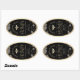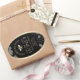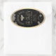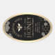 Classy black oval honey sticker with medieval heraldic honeybee design. Honeycomb pattern at top and bottom of oval. "Honey" is printed in a chiseled metallic font. Name of apiary is written in decorative curved text above the bee.