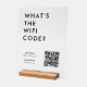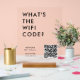 Une simple numérisation transparente personnalisée "What's the WiFi Code ?" pour se connecter au modèle de connexion Wifi Business Pedestal dans un style moderne et minimaliste qui peut être facilement mis à jour avec votre code QR, les détails du réseau ou le texte personnalisé.