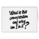 Parfois, vous devez express quelque chose qui n'a pas vraiment de mot. L'incrédulité approche. Quand j'étais au lycée, ma soeur et moi nous disputions. (Combattez les guillemets. Pas de poings.) Je hurle et je crie et je ne m'entends absolument pas. Finalement, elle s'arrêta, resta morte, me fixa avec d'énormes yeux qui braillaient, puis cria avec retenue, coupant ses mots. "Qu'est-ce que cette conversation et pourquoi y suis-je ? ? ? ?" Et en effet ? Nous avons tous les deux éclaté de rire et assez vite le riff était passé. Depuis lors, j'ai eu plusieurs occasions de me souvenir de ses paroles. Parfois, c'est la SEULE phrase qui résume vraiment votre sentiment ! Parfois même la vie se sent comme ça, pas seulement une bagarre. C'est pour vous à l'époque.