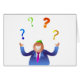 Belle illustration d'un homme heureux en costume jouant des symboles de point d'interrogation. Peut-être qu'il est là pour répondre à toutes vos questions et résoudre vos problèmes. Ce serait bien. Image disponible sur divers cadeaux et produits.