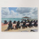 This tranquil coastal scene captures a peaceful seaside deck overlooking calm turquoise water beneath a softly clouded sky. Empty lounge chairs face the horizon, inviting stillness, reflection, and a slow moment of escape. The natural wood textures and open ocean create a soothing balance that makes this image especially satisfying to assemble as a jigsaw puzzle. Gentle light and layered clouds add visual interest without overwhelming the senses. The repeating shapes of chairs and planks provide an engaging yet calming puzzle experience. This design is ideal for puzzle lovers who enjoy serene travel destinations and quiet coastal landscapes. The atmosphere suggests early morning calm or an off-season retreat by the sea. Each piece reveals subtle details that reward patience and focus. Created from an original travel photograph, this puzzle celebrates quiet beauty rather than busy scenes.