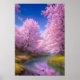 The quiet river flows serenely, its gentle currents carrying it past a stunning scene. On both sides of the river, the branches of cherry blossom trees stretch out, creating a canopy of delicate pink and white flowers. The air is filled with the sweet fragrance of the blossoms, and the sound of the river's flow and the chirping of birds adds to the tranquillity of the scene. It is a moment of peaceful beauty, one that feels like a moment of respite from the hustle and bustle of everyday life.