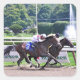Quiet Ruler, a bay three year colt by Majestic Warrior on the outside with Joel Rosario, runs down Flat Jack and Jose Lezcano at Saratoga during the running of the third race on August 3, 2014. The time of the six furlong race was 1:10 flat. Fleetphoto