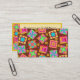 Make an impression with this business card for your quilt business, shop or guild. Coordinate with a matching business card holder. This business card features a quilt block design based on original art by Phyllis Dobbs. The design features favourite patchwork quilt blocks plus unique blocks created in vibrant and dynamic colours on a warm chocolate brown background. The colours are fuchsia pink, orange, turquoise, yellow, red and green. Fully customizable.