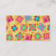Make an impression with this business card for your quilt business, shop or guild. Coordinate with a matching business card holder. This business card features a quilt block design based on original art by Phyllis Dobbs. The design features favourite patchwork quilt blocks plus unique blocks created in vibrant and dynamic colours on a sunny yellow background. The colours are fuchsia pink, orange, turquoise, yellow, red and green. Fully customizable.