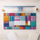 Une représentation photoréaliste et extrêmement détaillée d'une "courtepointe communautaire" composée de taches abstraites et diverses. Chaque timbre est unique, avec des couleurs vives ou des motifs géométriques abstraits, certains avec des bandes arc-en-ciel, d'autres dans des teintes lumineuses solides, des textures subtiles de ciment, ou des lignes cousues symbolisant différents schémas de couleurs de l'identité de genre de manière abstraite (p. ex., sections de bleu clair, rose, blanc). Les patchs sont cousus de manière transparente et fortement avec un fil d'argent épais et lumineux, symbolisant l'unité, l'interconnexion et la force collective. Les détails complexes soulignent la variété et l'harmonie des patchs, créant une métaphore visuelle puissante pour la diversité et la cohésion communautaire.