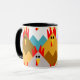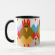 This mug has a quilt-inspired design of chickens made from diamonds.