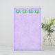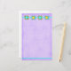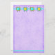 Quilt Lover Dog stationery can be customized to add your information or address. The page is tones of purple with a border strip of quilt stars at the top and a turquoise border line at the bottom.