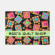 Welcome customers to your quilt store or business with this colourful door mat personalized with your business name. You can easily customize the name or other words for your door entrance. This door mat is great for promoting your quilt patchwork business and show quilting love and is also great for a quild or quilt class. The customizable business name is on a light green strip and can easily be customized to another word or name. This original quilt art combines favourite quilt blocks such as log cabin, stars and pinwheels plus unique blocks to form a quilt design with vibrant and dynamic colours that pop on a black background. The block colours are green, yellow, pink, orange, red, and turquoise blue. Small yellow flowers are in the background between the blocks. Fully customizable Quilt art is from fabric and quilt designer Phyllis Dobbs and is easy to make it your own.