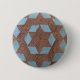 Quilt block in brown and blue "castle" pattern. The central "castle" is a brown star shape, surrounded by the "6 sided wall" with the "watch towers" extending out from the middle of the walls.