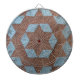 Quilt block in brown and blue "castle" pattern. The central "castle" is a brown star shape, surrounded by the "6 sided wall" with the "watch towers" extending out from the middle of the walls.