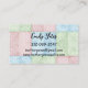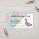 Custom quilting or sewing business card done in with the left side done in pastel quilt squares. Graphics of a cute colourful quilted goose, decorates the right side of the front. Personalize all the text fields for your business needs.