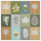 Quilted Summer Leaves Fabric has a green, grey, yellow and blue pattern with a faux quilt look with faux applique of leaves, pine cones and acorns. You can make this leaves print smaller or larger on this fabric. A lovely pattern throw pillow for any sewing project with green, grey, yellow or blue.