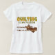 "Quilting is my passion - chocolate comes a close second!" "Quilting" in colourful wordart, patchwork letters made of yellow and green patterned material - and two bits of delicious chocolate decorating this design. The perfect gift for anyone that can´t decide between quilting and chocolate as their number one addiction!