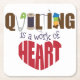 The love of quilting is uniquely displayed with this clever graphic. All the tools of the craft make up quilting letters.