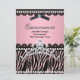 Quinceanera 15th Black Pink Zebra Tiara Invitation