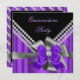 Quinceanera 15th Purple Silver Grey Bow Diamonds Invitation