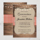 Quinceanera BBQ Party Red Check Rustic Wood Invite