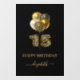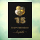 For a girly and glamourous Quinceañera, 15th birthday party. A black background, decorated with balloons. With the text: Happy Birthday. Personalize and add a name. The name is written in dark rose gold with a modern hand lettered style script with swashes. Number 15 is written with a trendy balloon style font, leopard pattern. To keep the swashes only delete the sample name, leave the spaces or emoji's in front and after the name.