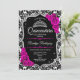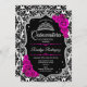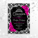 Features damask pattern, script font, hot pink roses, tiara and confetti. Classy fuchsia pink design with faux glitter silver. Perfect for an elegant glam celebration.
