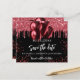 Quinceanera black red balloons save the date card