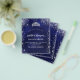 For an elegant Quinceañera, 15th birthday. A blue background colour, the blue colour is uneven. Decorated with faux silver glitter dust and a tiara, crown. Personalize and add a name, age and party details. The name is written with a hand lettered style script