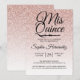 A glamourous, modern blush pink glitter ombre design Quinceañera 15 birthday invitation features the text "Mis Quince" in black chic handwritten script calligraphy. Perfect 15th birthday party invitation for a glamourous Quinceañera, perfect for her, the fashionista who loves modern pattern, sparkle, luxury and glam. Exclusively designed for you by Happy Dolphin Studio.