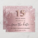 A girly and trendy Save the Date card for a Quinceañera, 15th birthday party. Blush pink background decorated with pink and faux silver confetti. Personalize and add a date and name/text. The text: Save the Date is written with a large trendy hand lettered style script with swashes. Number 15 with a balloon style font.