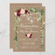 Quinceanera Botanical Greenery, Wood Frame, String Lights and Mason Jars, Watercolor Burgundy Marsala Floral, Kraft Invitation Card
