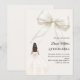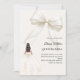 This sophisticated design features a large ivory bow adorned with delicate pearl details, paired with a graceful gown illustration.